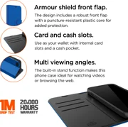 Étui portefeuille Eiger North FolioConçu pour les personnes en déplacement ! L'étui North Folio dispose de 3 fentes pour cartes de crédit et d'une pochette pour argent liquide, ce qui en fait l'accessoire parfait pour tous les jours. La fonction de support intégrée en fait l'étui idéal pour regarder des vidéos, des photos ou naviguer sur Internet. Le design folio comprend une coque intégrée pour une protection accrue, tandis que la couverture avant protège votre écran.CARACTÉRISTIQUES PRINCIPALES