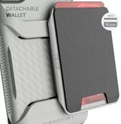 The leather card holder is made of high-quality material and can hold up to 4 cards. The wallet portion of the case is fully detachable for quick and easy wireless charging. With the modular design, the wallet can also be swapped out for other compatible accessories including a bike mount, armband and holster.