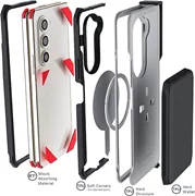 Looking to simplify your daily carry? Check out our upgraded EXEC ZFold5 magnetic wallet case. This case provides convenience, protection, and style and has been redesigned and precisely molded for the Galaxy Z Fold5. The Fold5 cardholder can securely hold your credit cards, ID, or transportation cards. We have engineered this wallet to easily attach and detach using our new MagnaLink magnets which also support some MagSafe accessories. If that wasn’t enough, we have also added a new secure locking design to support our armband, bike mount, and car mount attachments. Beyond that, you of course get our heavy-duty shockproof protection with 12FT drop resistance and raised bumper edges to protect the camera lenses, flash, and screen. Our Galaxy Z Fold 5 wallet case is available in Black and Gray.