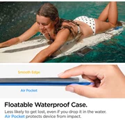 Le design de la housse Spigen A610 sera idéal dans des situations inhabituelles telles que : la plongée ou la natation. Les bords remplis d'air permettent à la valise de flotter facilement sur l'eau, minimisant ainsi le risque de perte.